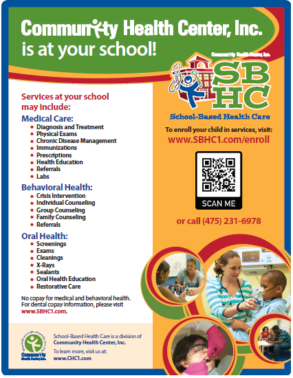 The medical care, behavioral health and oral health services are provided at the SBHCs by Community Health Center, Inc. (CHC)
